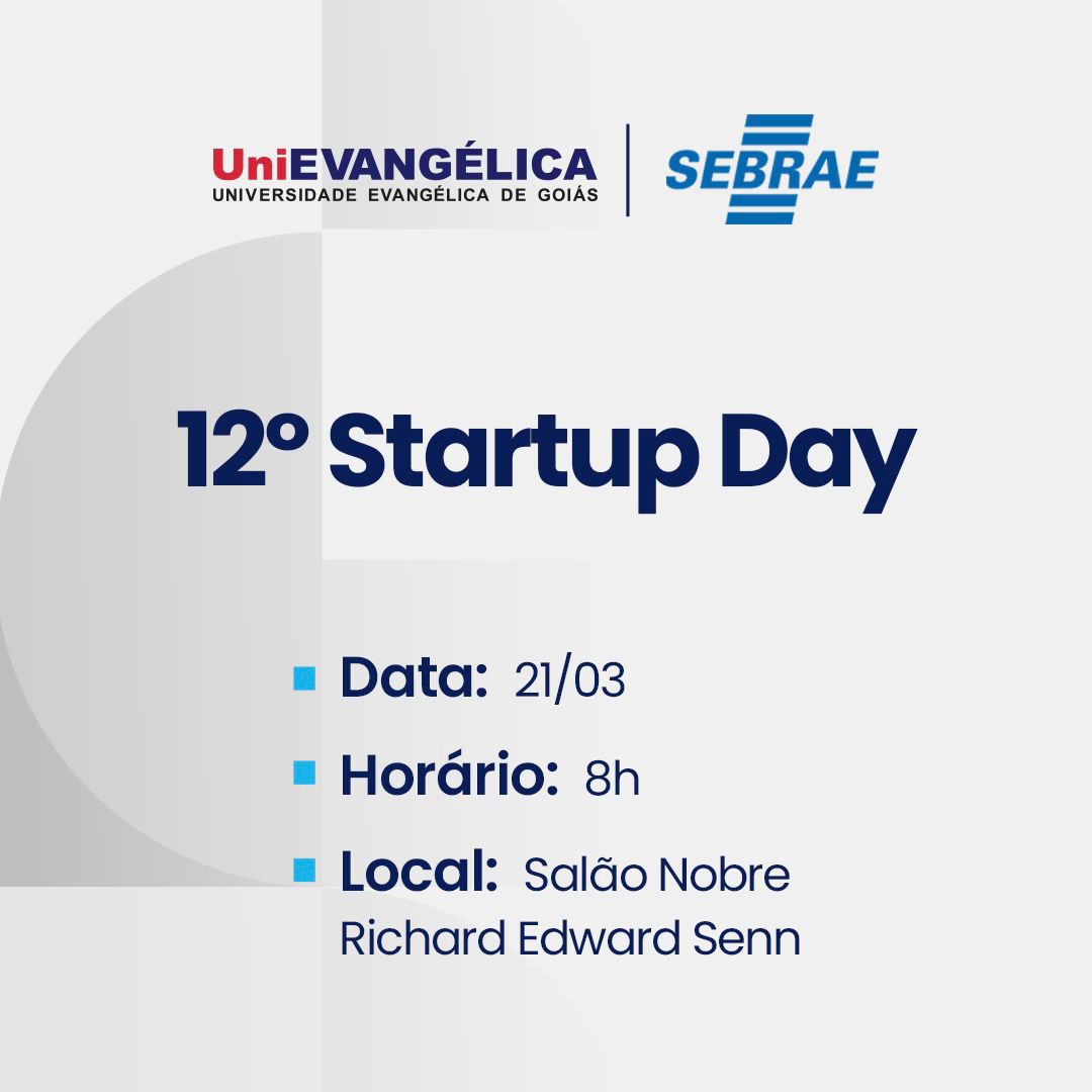 A Universidade Evangélica de Goiás (UniEVANGÉLICA) será palco de mais uma grande iniciativa voltada à inovação e ao empreendedorismo: o 12º Startup Day, que acontece no dia 21 de março, a partir das 8h, no Salão Nobre Richard Edward Senn. O evento é promovido pelo Serviço Brasileiro de Apoio às Micro e Pequenas Empresas (Sebrae) e integra uma mobilização nacional que ocorre simultaneamente em diversas cidades do país. As inscrições podem ser feitas pelo site oficial clicando aqui.